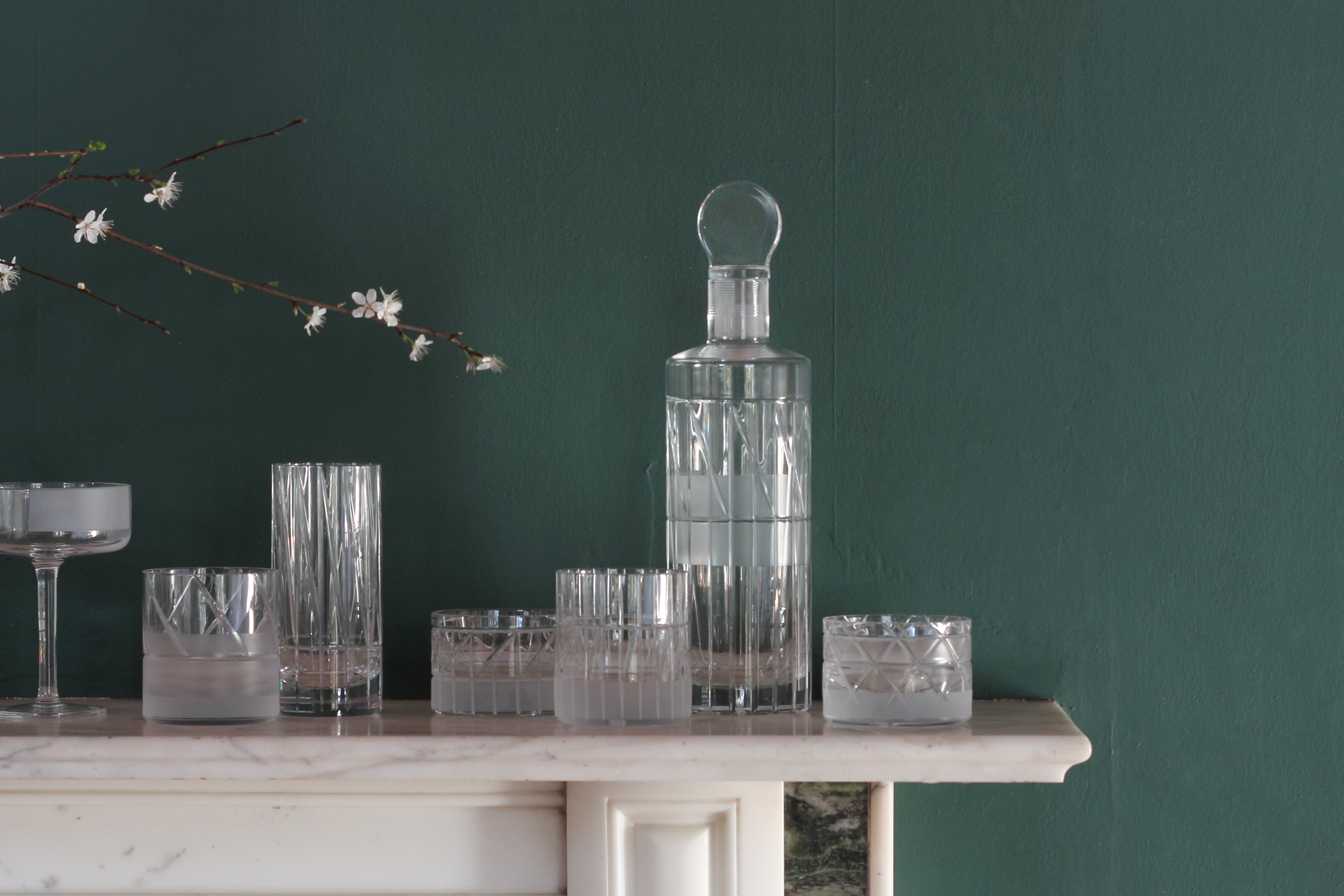 Inspired by Ireland’s sea-bound landscape—often veiled in ghostly fog—the collection captures the elusive beauty of the half-seen: the way light bends, blurs, and transforms in mist. This distinctive series includes wine glasses, highballs, whiskey tumblers, champagne and cocktail glasses, and a tall, glass-stoppered decanter—perfect for hosting, gifting, or elevating the everyday.