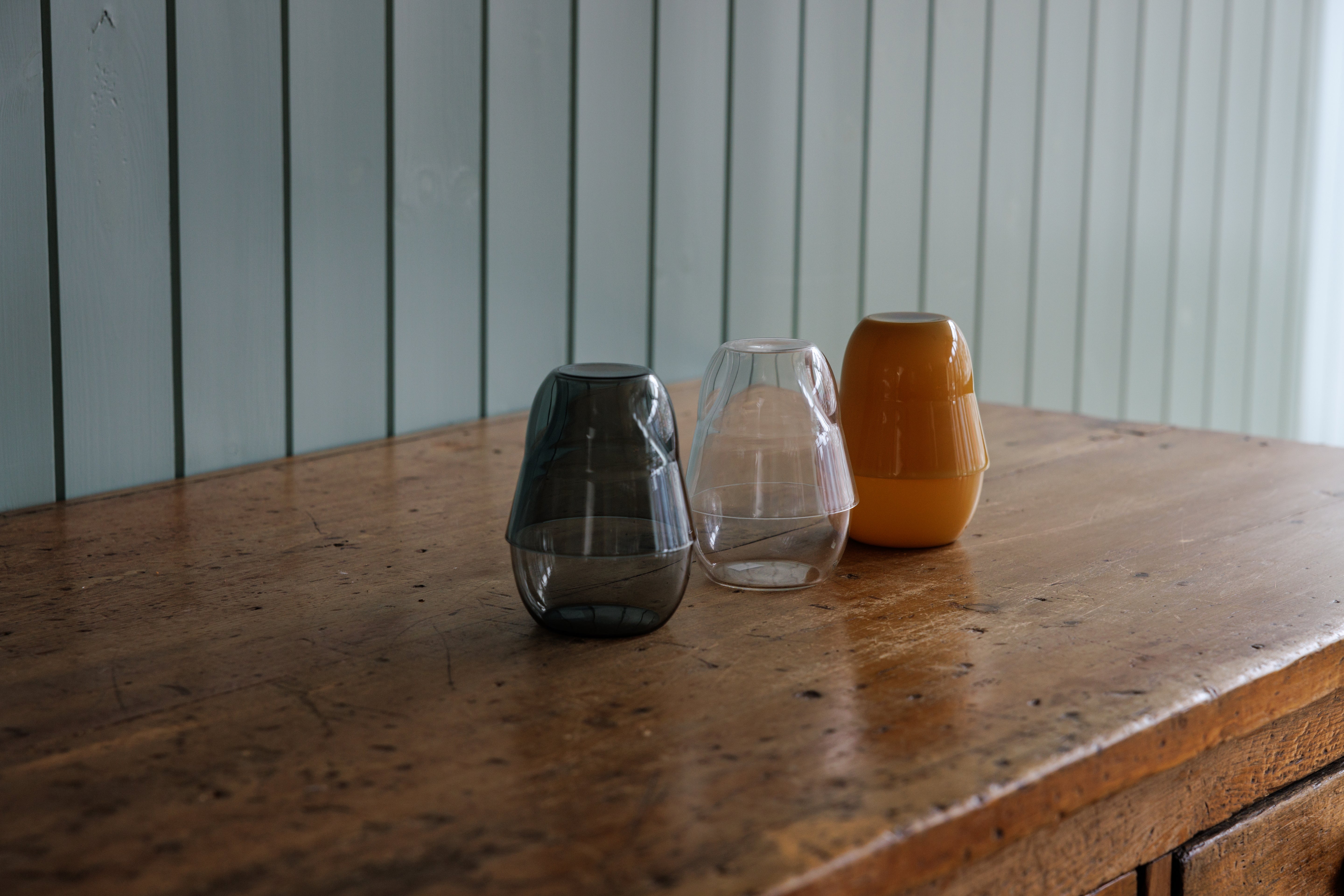 To bring these forms into the world, Pot Variations are realized across a spectrum of materials: blown and kiln-cast glass, brass, porcelain, and stone. Each material reveals a different facet of the gesture that initiated it, highlighting process, possibility, and the designer’s devotion to form above all else.